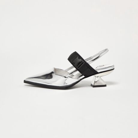 ポインテッドトゥにバックベルトで抜け感を出し、くびれた約5cmのヒールはシャープでありながら安定感のあるデザイン。