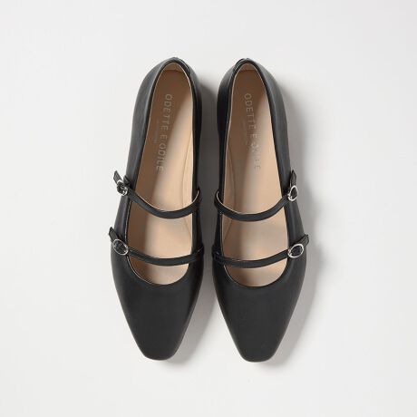 華奢な2本のベルトが目をひくフラットシューズ