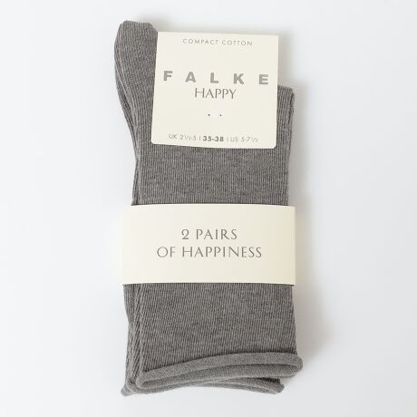 耐久性に優れた高密度のコットン混素材を使用したミドル丈ソックス「Happy」。
