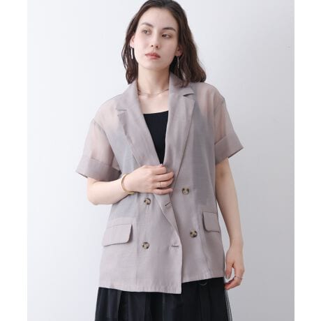 テーラードデザインのきれいめな印象はそのままに、全体にシアー感を持たせることで軽やかな抜け感をプラス。