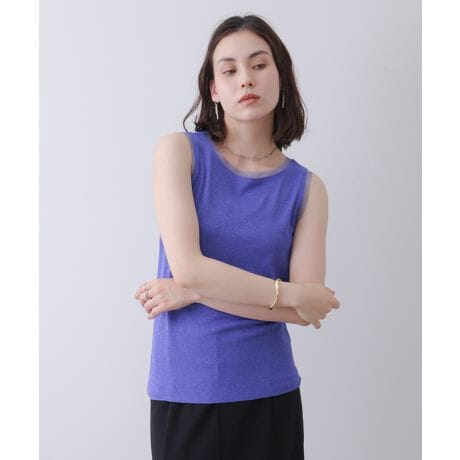 シアーシャツやカーディガンのインナーとしてチラ見せしても、ラメの上品な光沢が大人の抜け感を演出。