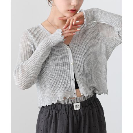 パールボタンとフリルディテールが上品な華やぎを添えるショート丈カーディガン。甘さを程よく抑えたデザインで、大人の女性でも取り入れやすい一枚です。コンパクトな丈感がスタイルアップも叶え、洗練された印象に仕上がります。