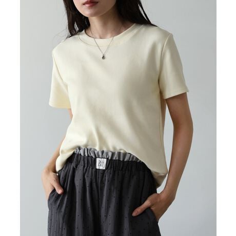 シルキータッチな風合いが魅力のコンパクトTシャツ。程よくフィットするシルエットで、シンプルながらも女性らしいラインを引き立ててくれる一枚です。ベーシックながらも上品な質感で、カジュアルにもきれいめにも着回せる万能アイテム。