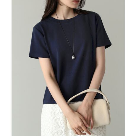 シルキータッチな風合いが魅力のコンパクトTシャツ。程よくフィットするシルエットで、シンプルながらも女性らしいラインを引き立ててくれる一枚です。ベーシックながらも上品な質感で、カジュアルにもきれいめにも着回せる万能アイテム。