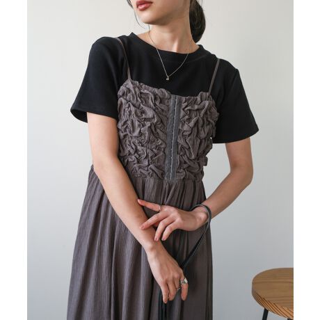 ハイウエストのパンツやスカートと合わせて、すっきりとしたスタイルに。キャミワンピースやサロペットのインナーとしても活躍します。ジャケットのインナーに合わせれば、程よくきちんと感のある大人カジュアルコーデに◎