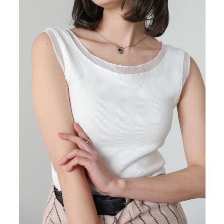 ベーシックなタンクトップにチュールラインをプラスした、さりげないデザイン性が魅力の一枚。シンプルながらも程よく華やかさを添えてくれるので、インナー使いでもしっかり存在感を発揮します。見せるインナーとして、レイヤードスタイルに抜け感と女性らしさをプラスしてくれるアイテムです。