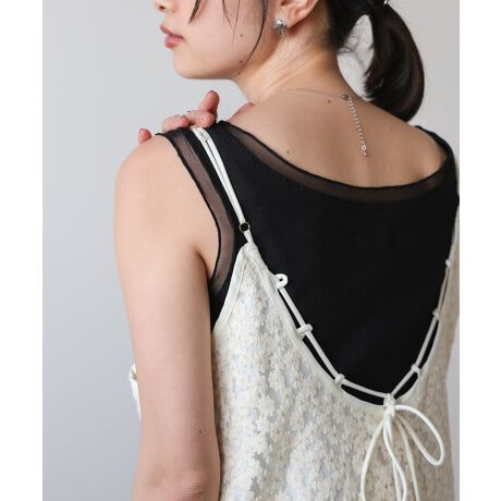 ベーシックなタンクトップにチュールラインをプラスした、さりげないデザイン性が魅力の一枚。シンプルながらも程よく華やかさを添えてくれるので、インナー使いでもしっかり存在感を発揮します。見せるインナーとして、レイヤードスタイルに抜け感と女性らしさをプラスしてくれるアイテムです。