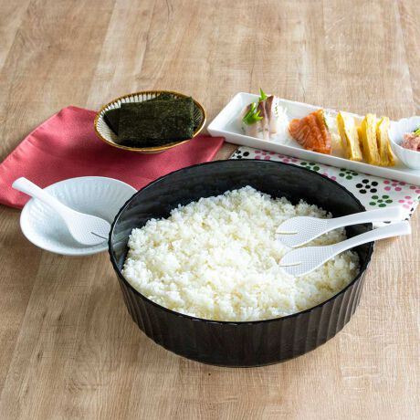 ●お寿司を囲んでパーティを楽しめる、漆器風の寿司桶としゃもじのセットです。