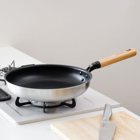 ●アルミとステンレスを合わせた、軽くて丈夫な2層鋼フライパン28cmです。