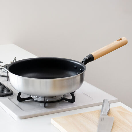 ●アルミとステンレスを合わせた、軽くて丈夫な2層鋼深型フライパン26cmです。