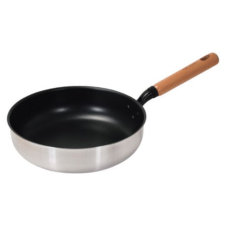 ●アルミとステンレスを合わせた、軽くて丈夫な2層鋼深型フライパン28cmです。