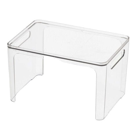 [型番:488352]【デザイン】●圧迫感のないすっきりしたデザインのスタッキングシェルフのミニサイズです。●積み重ねて使えるので、スペースを有効活用できます。●両側に持ち手がついているので、簡単に持ち運びできます。●クリアとブルーの透明感ある2色展開です。【スペック】サイズ/約幅23.5×奥行16×高さ14cm内容量/1個材質/アクリル樹脂種類/クリア、ブルー生産国/日本製耐熱温度/80度耐荷重/約5kg(1個使用時)