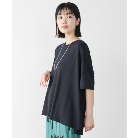 ワイドシルエットでゆったりとした着心地ですが、落ち感のある素材が着やせして見せてくれるプルオーバー。袖と身頃に切り替えを施しており、シンプルながらも立体感のあるシルエットを作ります。前後差のある裾周りで、パンツにもスカートにも合わせやすいデザインに仕上げました。