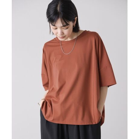 ワイドシルエットでゆったりとした着心地ですが、落ち感のある素材が着やせして見せてくれるプルオーバー。袖と身頃に切り替えを施しており、シンプルながらも立体感のあるシルエットを作ります。前後差のある裾周りで、パンツにもスカートにも合わせやすいデザインに仕上げました。