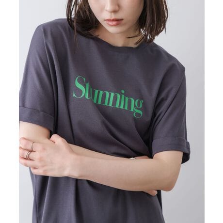 シンプルなデザインに映えるロゴがコーデのアクセントになり、1枚でこなれた印象に。