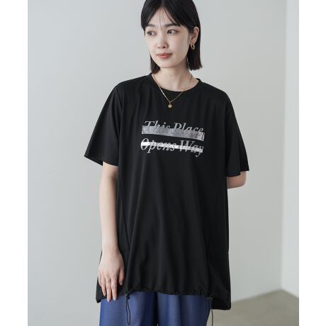 上品な箔風ロゴが目を引く、大人カジュアルにぴったりのデザインTシャツ。フロントのロゴがさりげないアクセントになり、シンプルながら一枚で着映えするアイテムです。ゆったりとしたシルエットで体のラインを拾いにくく、気になる腰まわりも自然にカバー。裾にはドロストコードを施し、絞ることでシルエットの変化を楽しめるのもポイントです。
