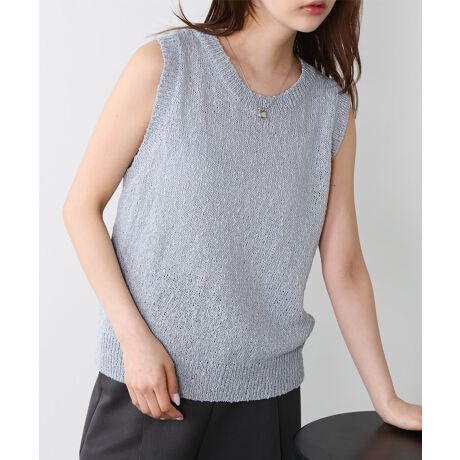 表情のあるニュアンス編みが魅力のサマーニットベスト。シンプルながらもさりげない編み柄がアクセントになり、着るだけでこなれた印象に仕上がります。抜け感のあるシルエットで、大人のリラックススタイルにぴったりな一枚です。