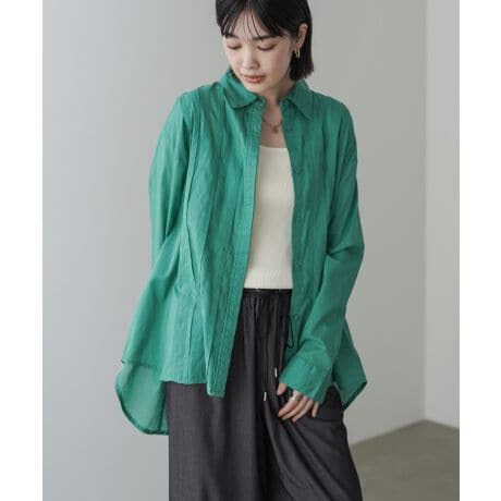 繊細なボイル素材に施されたフロントのタックデザインが、上品で洗練された印象を与えるシャツ。縦ラインを強調するディテールが、すっきりとしたシルエットを演出しスタイルアップ効果も期待できます。程よくゆとりのあるサイズ感で、きちんと感がありながらリラックスして着用できるのも魅力。シンプルながらもデザイン性があり、トレンドに左右されず長く愛用できる一枚です。