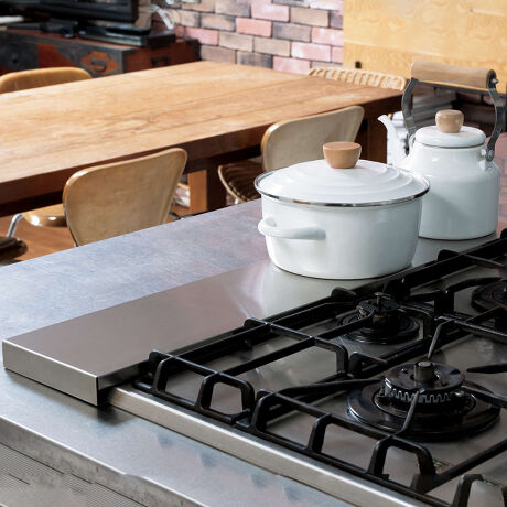 ●コンロ奥の排気口に置くだけで、油はねやゴミの侵入をしっかりガードします。