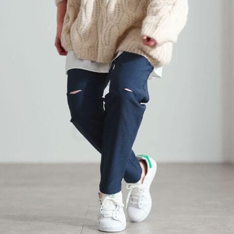 計算ダメージで洒落るストレッチスリムフィットダメージパンツ登場☆シンプルなのに印象的なさりげないダメージ加工。綺麗なスリムシルエットはキープしつつ、窮屈感のないわたり幅・腰回りにゆとりを持たせて穿き心地超楽ちん♪深めの股上でぽっこりお腹もしっかり包み込む◎ウエスト総ゴム&調節紐付きでお腹まわり楽ちんな穿き心地☆伸縮性に優れた生地でただ伸びるだけではなく脚の動きにしっかりフィット◎