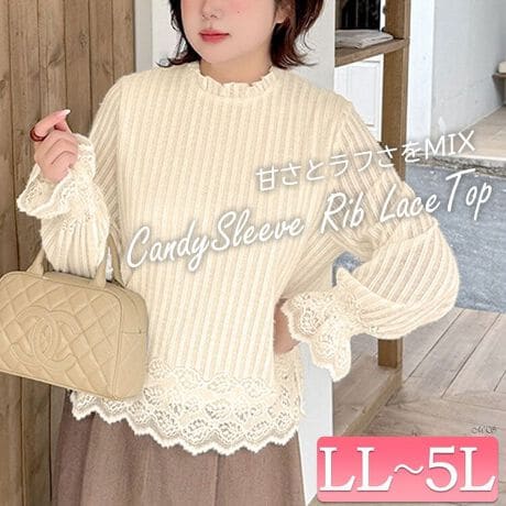 【大きいサイズ】 キャンディスリーブリブレーストップス 大きいサイズ レディース トップス
