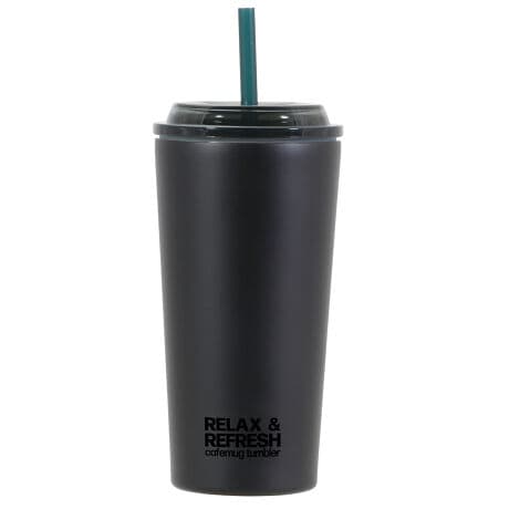 ●スタイリッシュでシンプルなブラックデザインで、職場でもおしゃれに使えるストロー付きタンブラーです。