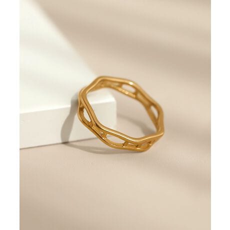 ニュアンス感のあるデザインが、印象的な手元に導くリング。
