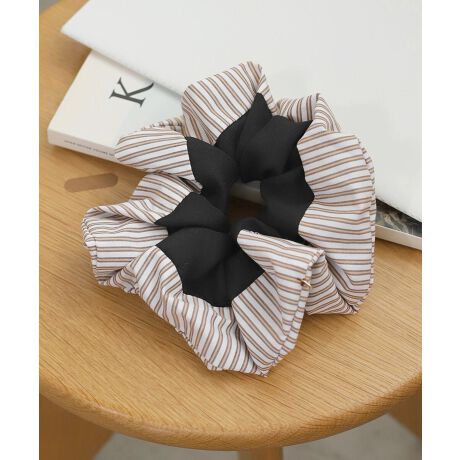 レトロな配色やピッチにこだわったマルチボーダー柄が、こなれたカジュアルスタイルを演出するシュシュ。