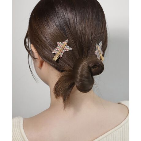 レトロな配色やピッチにこだわったマルチボーダー柄が、こなれたカジュアルスタイルを演出するクリップ。ニュアンス感のあるスターモチーフが、うしろ姿を大人かわいい雰囲気に仕上げます。※ATTENTION※■微細なキズや製造ムラはすべての商品に含まれます。[型番:DG340140H]