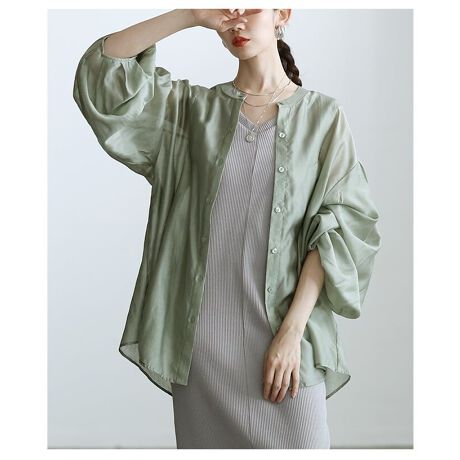 軽やかな透け感が魅力のシアーシャツブラウス。フロントに施したタックがさりげない立体感を生み、シンプルながら表情豊かな一枚に。さらっと羽織るだけでこなれた雰囲気が完成します☆
