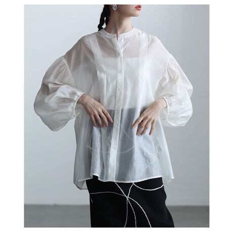 軽やかな透け感が魅力のシアーシャツブラウス。フロントに施したタックがさりげない立体感を生み、シンプルながら表情豊かな一枚に。さらっと羽織るだけでこなれた雰囲気が完成します☆