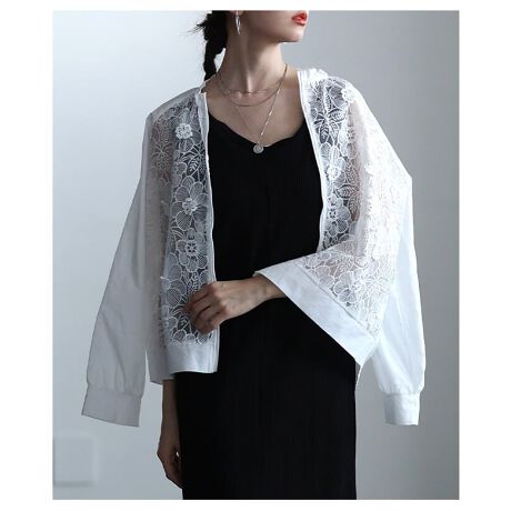 フロントに花レースをあしらった、軽やかな印象のブルゾン。ほどよい透け感がコーデに抜け感をプラスします。季節の変わり目にさっと羽織れる、頼れる一着です☆