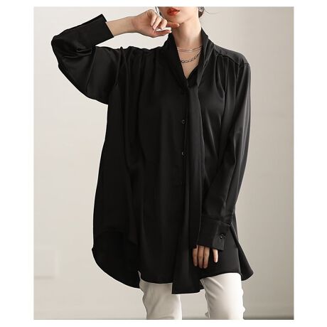 マルイウェブチャネル   /   サワアラモード   /   トップス   /   ブラウス   /   【ブラウス】 レディース トップス チュニック丈 サテン ボウタイ 高見え 仕事服 光沢素材