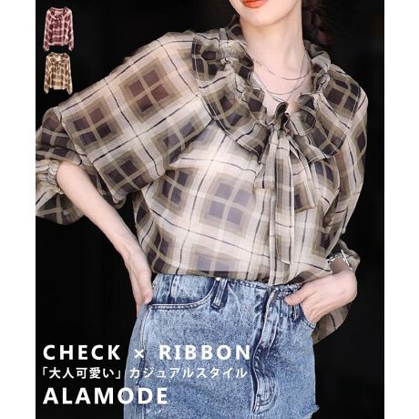 チェック柄にシフォンのフリルカラーを合わせたラグランブラウス。ふんわり軽やかなシルエットで、着るだけでコーデに華やかさをプラス。甘さと上品さを程よく楽しめる一枚です☆