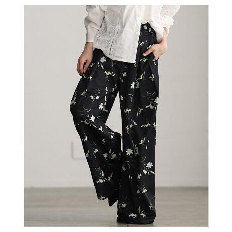フラワープリントが華やかなタックワイドパンツ。ふんわり広がるシルエットとタックの立体感で、穿くだけでこなれた印象に。シンプルなトップス合わせでも映える一本です☆
