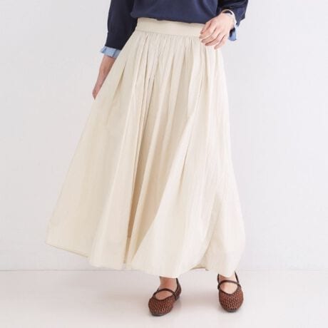 シアー感のある表地を使用した、トレンドライクなギャザーフレアスカート