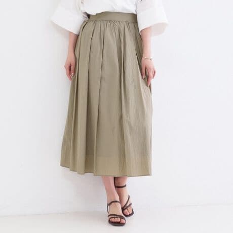 シアー感のある表地を使用した、トレンドライクなギャザーフレアスカート