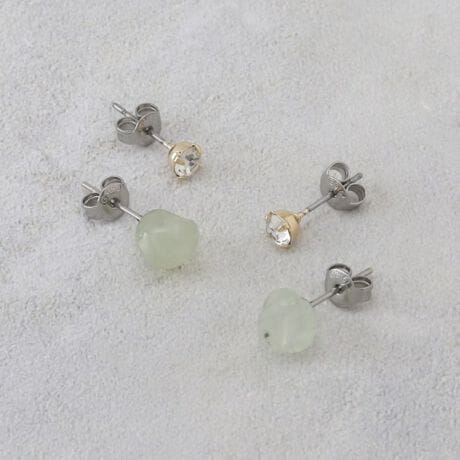 天然石とビジューを組み合わせたセットで、単品でも2連でも表情を変える上品な佇まい。