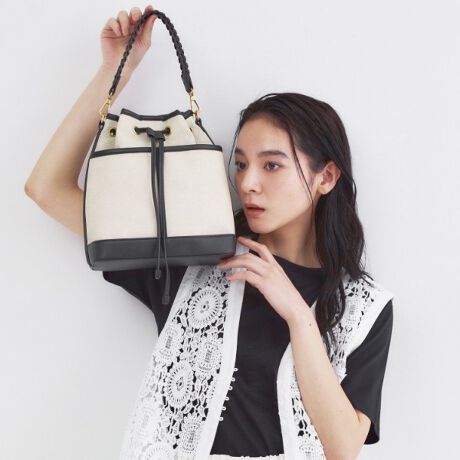 ・開き口サイドの紐を引っ張ると巾着シルエットになるトレンドデザイン