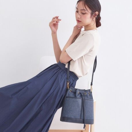 2WAY仕様が嬉しいハンズフリーお出かけできる巾着デザインのショルダーバッグ
