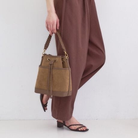 ・開き口サイドの紐を引っ張ると巾着シルエットになるトレンドデザイン