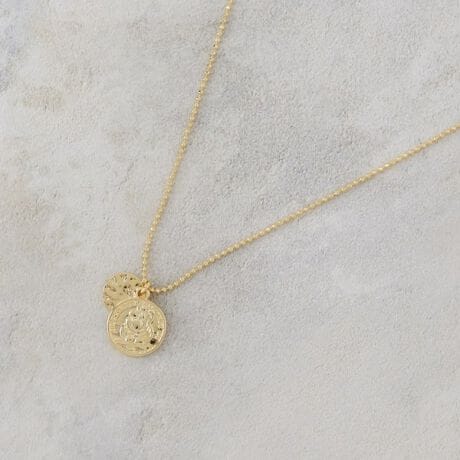 スタイリッシュなチェーンに2連コインチャームが添えられたネックレス。