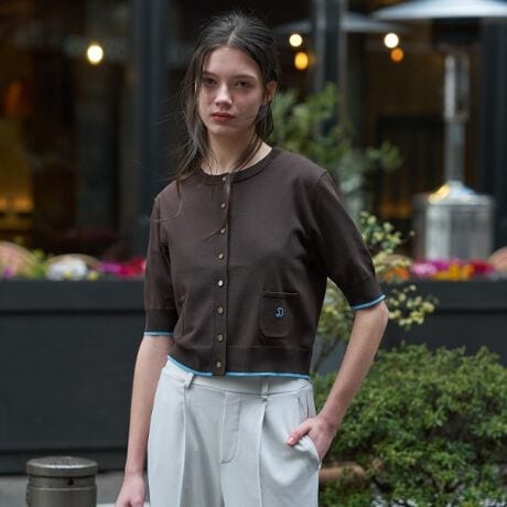また、キャミソールやタンクの上から羽織としても使える便利なカーデ型。