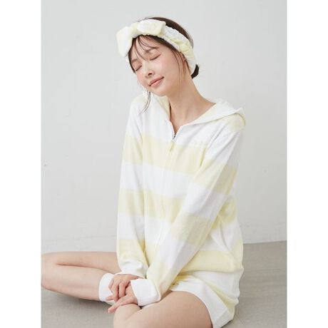 なめらかな肌触りの’スムーズィーライト’素材を使用した、gelato piqueの定番2色ボーダーシリーズです。コントラストの効いた、夏らしいフレッシュな配色が魅力のジップパーカ。胸元にロゴ刺繍が入り、ファスナーチャームも半透明の素材で涼しげに仕上げました。色はレモンを思わせるイエロー、ストロベリーをイメージしたピンク、ブルーベリーのようなブルーの3色展開。同シリーズのボトムと組み合わせたり、同時期に展開するソルベ柄シリーズとのコーディネートもおすすめです。