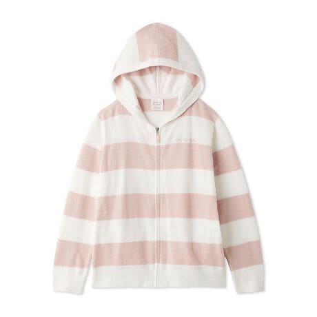 なめらかな肌触りの’スムーズィーライト’素材を使用した、gelato piqueの定番2色ボーダーシリーズです。コントラストの効いた、夏らしいフレッシュな配色が魅力のジップパーカ。胸元にロゴ刺繍が入り、ファスナーチャームも半透明の素材で涼しげに仕上げました。色はレモンを思わせるイエロー、ストロベリーをイメージしたピンク、ブルーベリーのようなブルーの3色展開。同シリーズのボトムと組み合わせたり、同時期に展開するソルベ柄シリーズとのコーディネートもおすすめです。