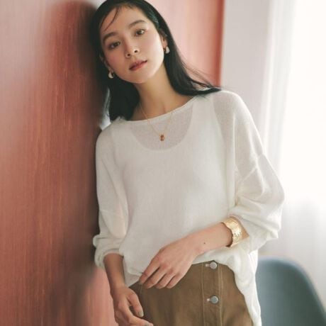 ・身体のラインを拾いにくく、ラフすぎない大人なバランスで着こなせる一枚。