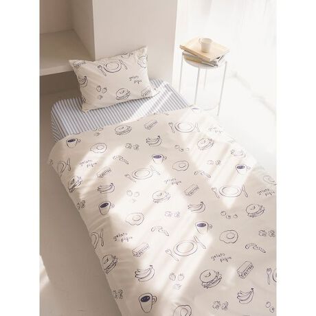 <b>【朝食のモチーフを散りばめたシングル寝具3点セット】</b>