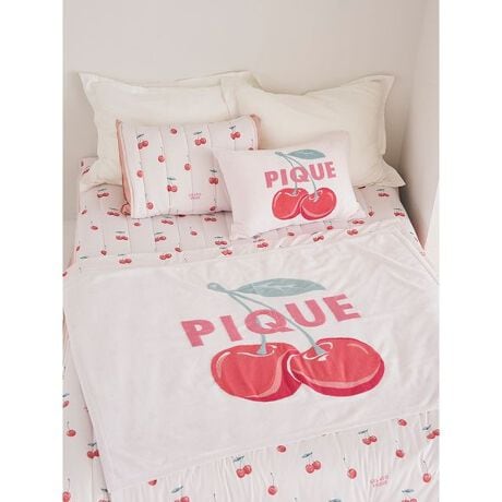 オレンジ・チェリー・ブルーベリーの3つのモチーフを、夏らしくみずみずしいタッチで描いたフルーツジャガードの寝具シリーズです。なめらかな肌触りの'スムーズィー'素材を使用した、コンパクトなサイズ感のハーフケット。通常のマルチカバーの半分サイズなので、夏のエアコン対策やお昼寝、膝掛けなど幅広くご使用いただけます。それぞれのフルーツのイメージに合わせた、異なるデザインのロゴを添えているのがポイント。色はオレンジ、ピンク、ブルーの3色展開。同シリーズの寝具やルームウェアとコーディネートしてお楽しみください。