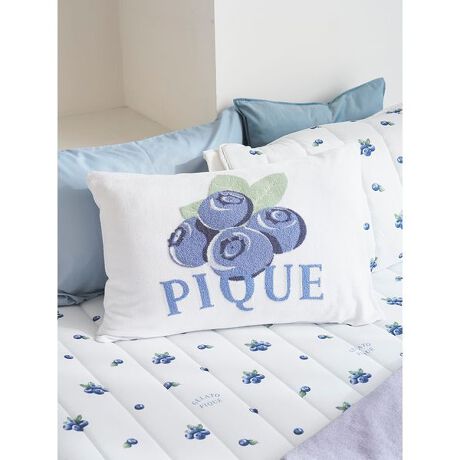 オレンジ・チェリー・ブルーベリーの3つのモチーフを、夏らしくみずみずしいタッチで描いたフルーツジャガードの寝具シリーズです。なめらかな肌触りの’スムーズィー'素材を使用した、キャッチーなカラーリングのピローケース。それぞれのフルーツのイメージに合わせた、異なるデザインのロゴを添えているのがポイントです。色はオレンジ、ピンク、ブルーの3色展開。同シリーズの寝具やルームウェアとコーディネートしてお楽しみください。