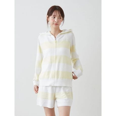 なめらかな肌触りの’スムーズィーライト’素材を使用した、gelato piqueの定番2色ボーダーシリーズです。コントラストの効いた、夏らしいフレッシュな配色が魅力のショートパンツ。腰元にロゴ刺繍入り、右後ろにポケットを付け、短すぎない丈感ではきやすく仕上げました。色はレモンを思わせるイエロー、ストロベリーをイメージしたピンク、ブルーベリーのようなブルーの3色展開。同シリーズのトップスと組み合わせたり、同時期に展開するソルベ柄シリーズとのコーディネートもおすすめです。